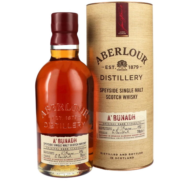 Meaning ‘the original’ in Gaelic, A’bunadh is made in homage to Aberlour’s founder, James Fleming. A’bunadh is a whisky hand-made from start to finish with each batch being created to ensure a rich and complex flavour of moist raisin, and homemade fruit cake. It is bottled at cask strength resulting in a robust and deeply intense, sherried whisky.