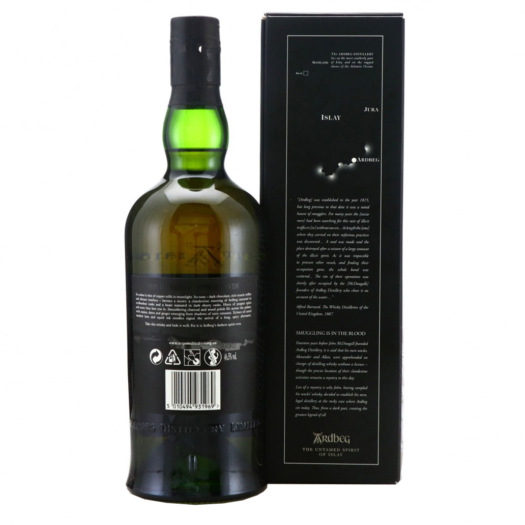 The Ardbeg Dark Cove was matured in ex-bourbon casks and dark sherry casks. The style has been inspired by the history of illicit distilling on the Island of Islay. This was the public release, launched for Ardbeg Day/Night at the 2016 Feis Ile.