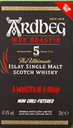 Wee Beastie is the newest addition to Ardbeg’s core range, it is Five years old, matured in ex-bourbon and ex-oloroso sherry casks and bottled at 47.4% ABV.