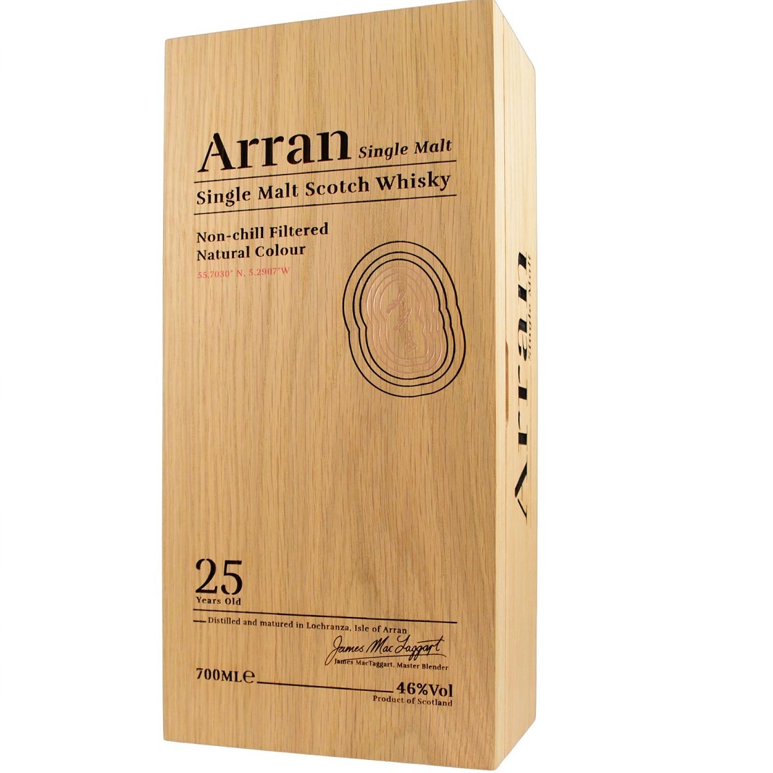The 25 Year Old is the oldest core range age statement available from Arran. The whisky has been matured in ex-Sherry and Bourbon Casks and is bottled at 46% Vol without chill filtration or the addition of any colouring.
