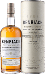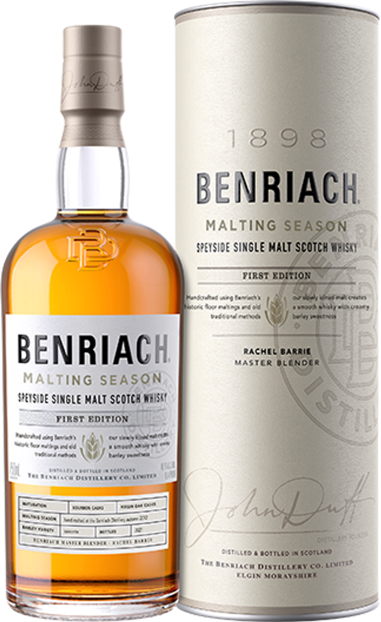 Celebrating traditional methods dating back to the earliest days of Benriach Distillery, Benriach Malting Season is the first expression in a century to be produced entirely using barley malted from our Speyside distillery’s historic floor maltings. The first edition of Benriach Malting Season is two-cask matured in bourbon and virgin oak barrels to bring out the wholesome, creamy flavor we find in the distillery’s floor malted spirit, giving a beautiful barley gold color to the liquid. The expression boasts a rich aroma of barley sugar, almond fudge and poached orchard apple with smooth, rounded flavors of vanilla and honeyed pear, with a lasting nuttiness of slowly kilned malt.