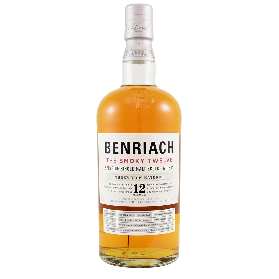 The Smoky Twelve is the perfect marriage of fruit, malt, oak and rich layers of smoke. Crafted from a combination of unpeated and peated spirit and three cask matured for at least twelve years in bourbon barrels, sherry casks, and Marsala wine casks. The whisky from each cask is then expertly married together to create a smooth, creamy Single Malt, multilayered with flavours of ripened fruit, aromatic smoky sweetness and warming oak spice.
