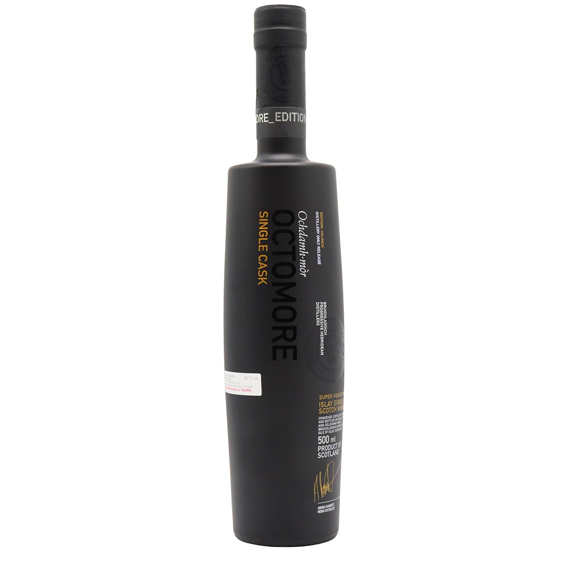 Octomore is the super-heavily peated single malt produced by Bruichladdich distillery, the most routinely heavily peated in the world. The whisky is named after the farm of the same name, located on a hillside north of the town of Port Charlotte. Having been traditionally an un-peated single malt due to the needs of its former owners for their blends, Murray McDavid were quick to diversify the Bruichladdich portfolio, also introducing the more lightly peated Port Charlotte and Lochindaal.