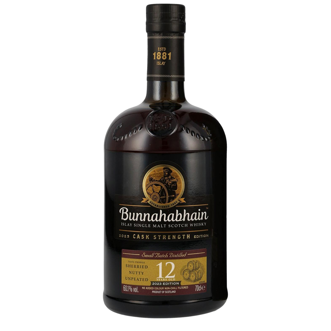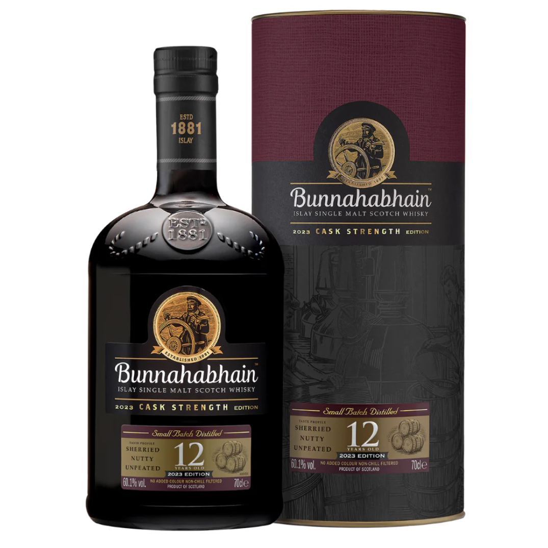 The 2023 Edition is the third annual 12 Year Old Cask Strength release from Bunnahabhain. It has been bottled at a higher ABV of 60.1% and delivers a fruiter profile than the previous releases. Bottled at Cask Strength, this Single Malt showcases the rich flavours and the classic sherry influenced house style of Bunnahabhain.