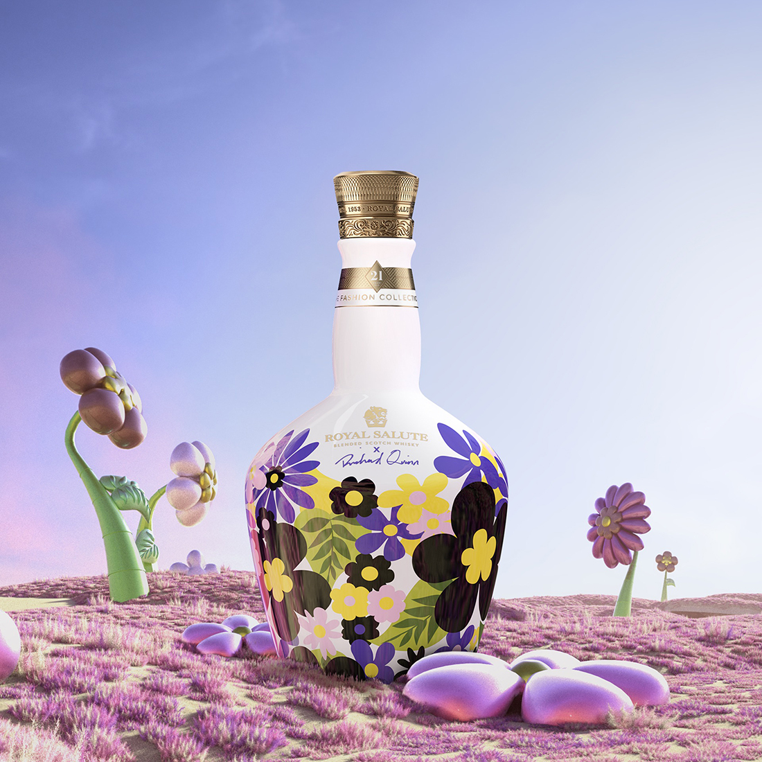 Inspired by Richard Quinn’s signature floral prints, this year’s edition is available in three unique flagons featuring vibrant patterns personally created by the designer. His remarkable craftsmanship brings an ethereal energy and enchantment to the Royal Salute flagons, creating true collector’s items that encapsulate the beauty and artistry of the world of fashion.