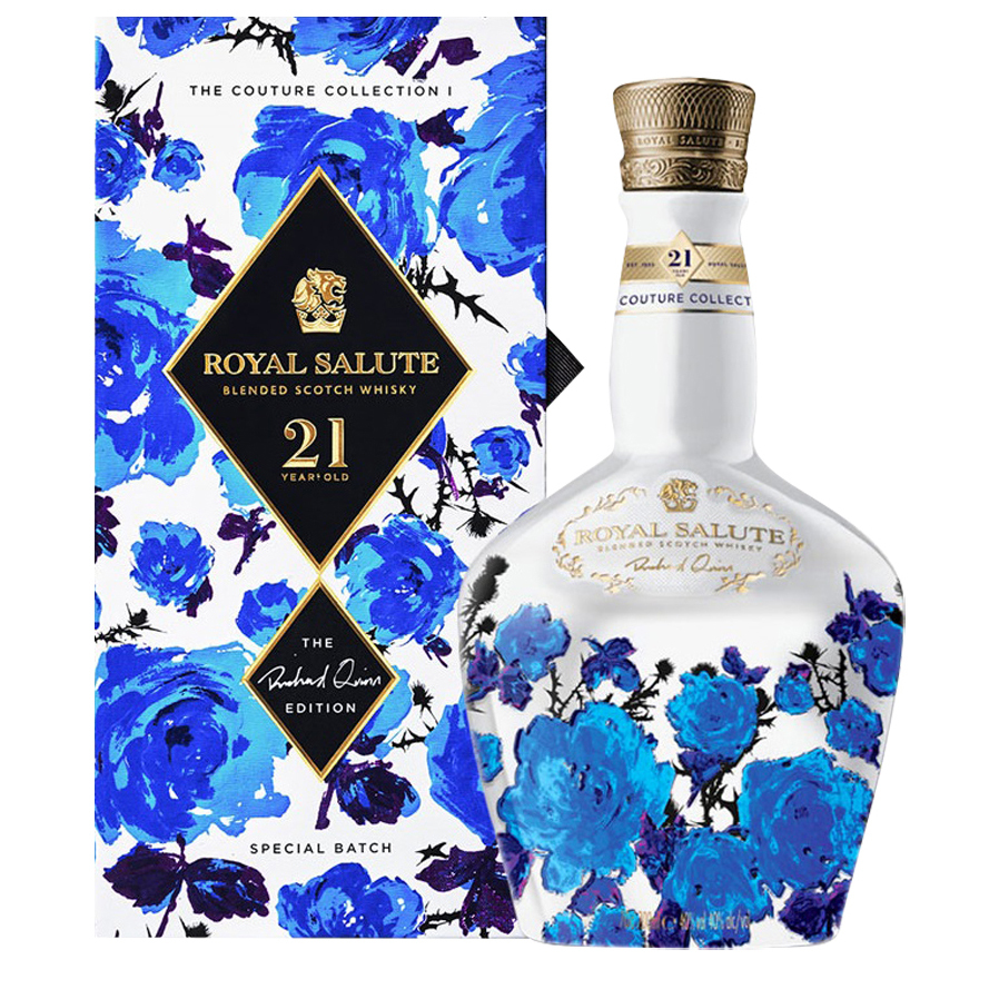 This is the first edition of a striking collection celebrating the world of Couture, from Royal Salute in collaboration with acclaimed British fashion designer, Richard Quinn. Combining masterful blending and daring design, the 21 Year Old Richard Quinn edition brings together two worlds of craft.