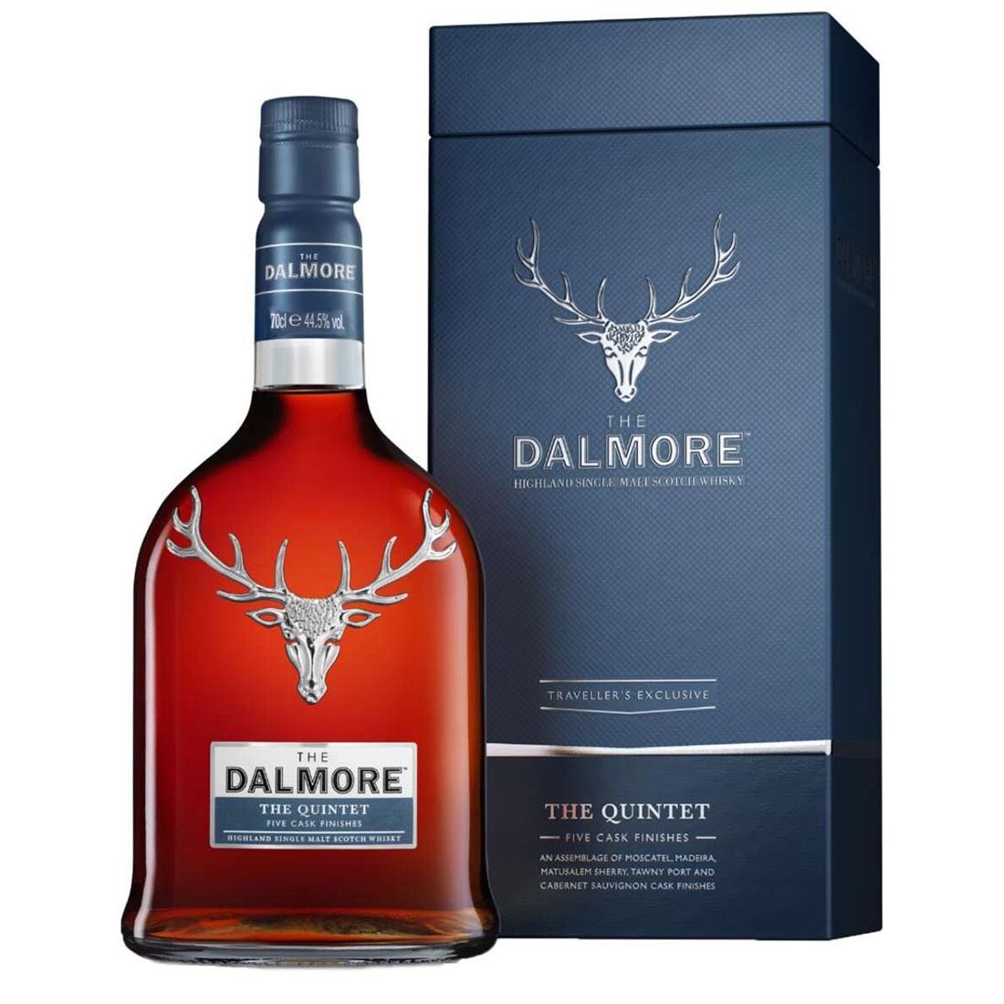 Part of a series released by Dalmore originally for the Travel Retail market, The Quintet has been released in 2020. The mini-series includes three whiskies from the Highland distillery, each release was matured in an increasing number of cask finishes, with the Trio being finished in three casks, the Quartet in four casks and the Quintet in five casks.