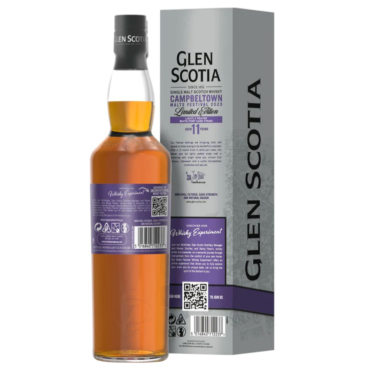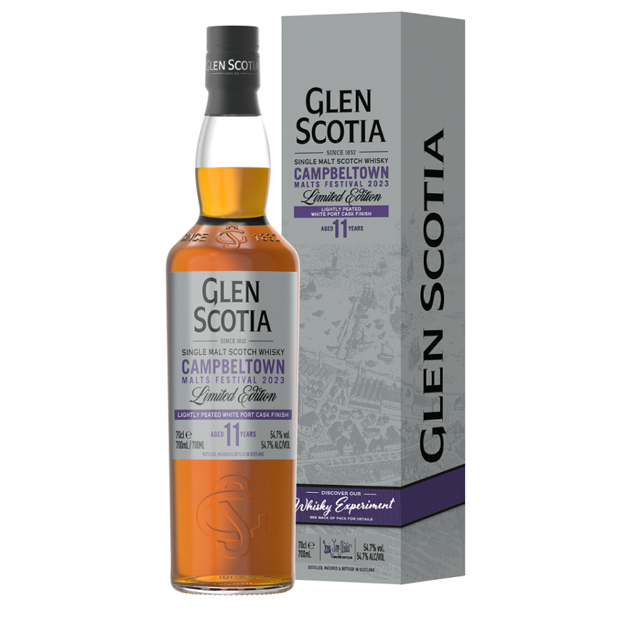 This Limited Edition 11 Year Old from Glen Scotia was released to celebrate the 2023 Campbeltown Malts Festival. It is a lightly peated Single Malt, finished for 12 months in white port casks prior to bottling at cask strength.