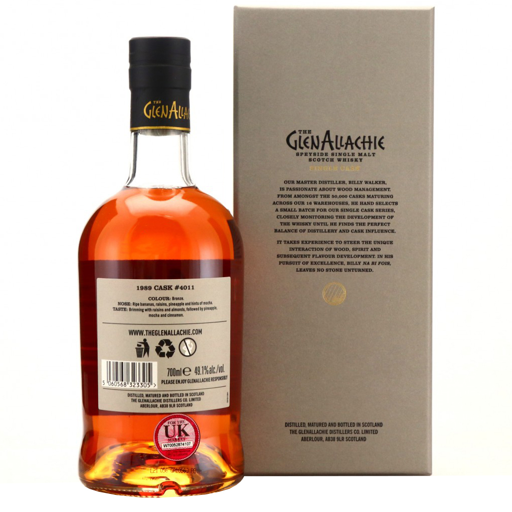 GlenAllachie Single Malt Cask 4011 was distilled on 29 September 1989, matured for 31 years in a Rioja Barrique and bottled in February 2021.