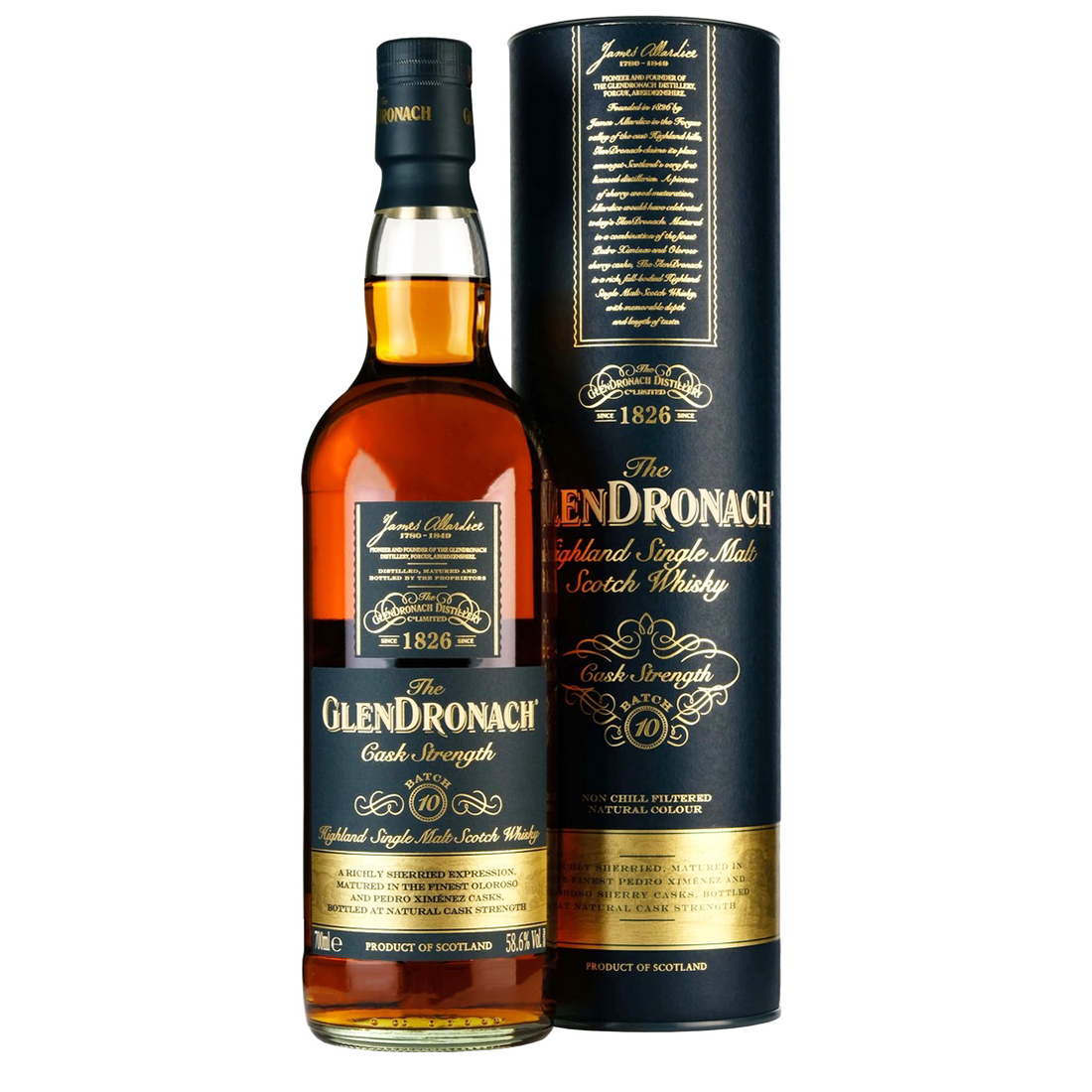 Part of the Cask Strength releases from GlenDronach, this is Batch 10, a richly sherried expression. The whisky has been matured in the finest Oloroso and Pedro Ximénez casks and bottled at cask strength.