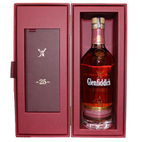 Launched for travel retail in 2014, this bottling of 25 Year Old from Glenfiddich was matured in a mixture of American oak and European sherry casks. Over two and a half decades the wood from large sherry butts gradually gives the whisky deeper, richer fruit flavours. The smaller American oak barrels impart flavour much more quickly and infuse the single malt with soft vanilla notes and a hint of spice. Finally married together in small batches, this whisky is abundant with complex aromas and flavours.