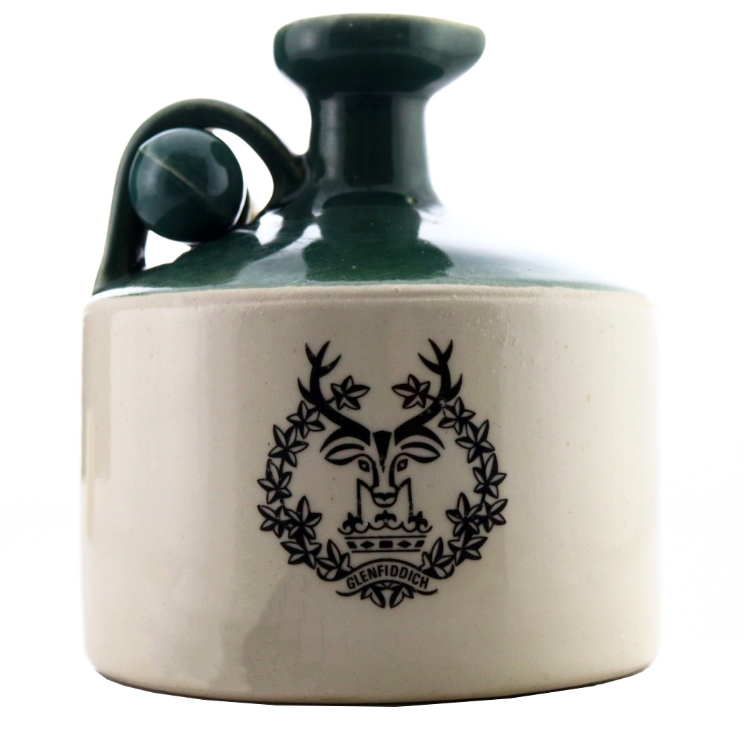 This 8 Year Old was released in the 1970s, presented in a ceramic handle decanter, designed for the company in 1956 and first used for the Glenfiddich brand in 1961. Despite being the world’s first Single Malt brand, the words “Single Malt” did not appear on the label until the year 2000, this release is labelled ’Unblended Scotch Whisky’.