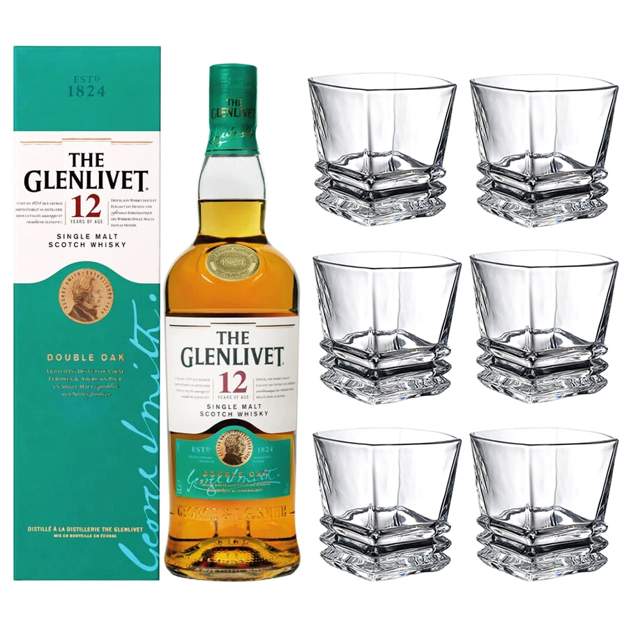 Included in this bundle Glenlivet 12 Year Old Double Oak Single Malt Whisky and set of 6 tumblers.