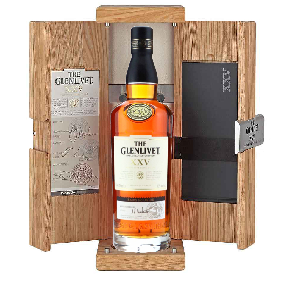 The Glenlivet 25 Year Old Single Malt is the oldest expression in Glenlivet’s core range. Glenlivet 25 Years Old XXV has been finished in hand-selected first fill Oloroso sherry casks, an exceptional whisky with elegant character, complemented by subtle sherry tones. This is Batch #0419E released in 2020.