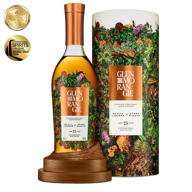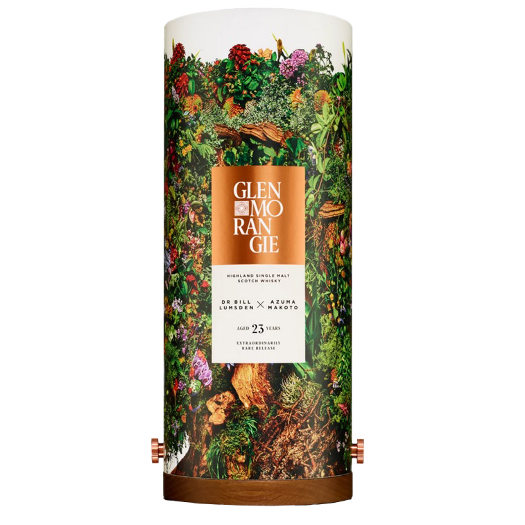 Part of the collaboration between Glenmorangie’s Creative Director Dr. Bill Lumsden and renowned floral sculptor Azuma Makoto, this is a Limited Edition 23 Year Old Extraordinarily Rare Release Single Malt Whisky. Dr Bill first took a classic Glenmorangie, long aged in ex-bourbon casks, heady with aromas of lemon balsam and orchids. He then united that single malt with the first whisky from Glenmorangie to be finished in casks which once held Chardonnay white wine from the Meursault appellation in Burgundy. Inspired by that whisky’s complex notes of flowers, rain-soaked moss and earthy notes, Azuma Makoto created a botanical masterpiece, which now adorns this whisky.