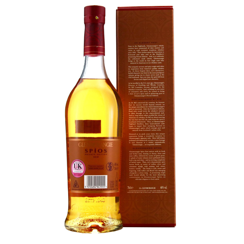 Spios was the ninth release from Glenmorangie Private Edition range and the first single malt to have ever been entirely matured in American rye whiskey casks. The name Spios, is Scots Gaelic for ‘spice’. This edition has been released in 2018.