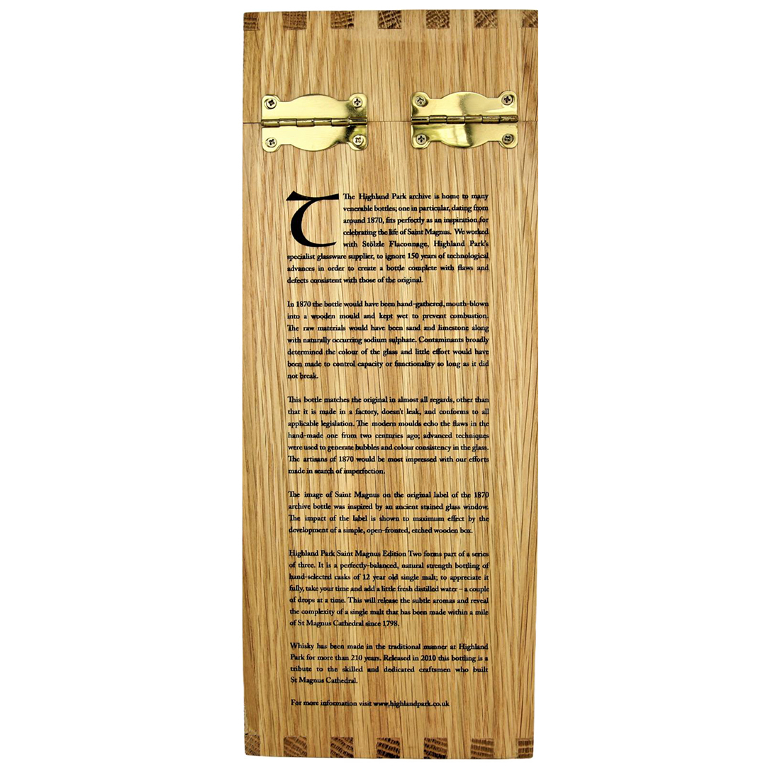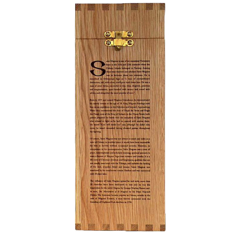 This Limited Edition celebrates Saint Magnus, 20 years after the murder of the Earl by his treacherous cousin Haakon, the Earl was canonized. The label of these whiskies features an image of the saint taken from the stained glass window in the Cathedral. The bottle is presented in a wooden crate etched with Highland Park branding and the tale of Earl Magnus.