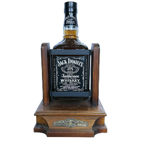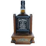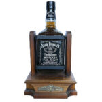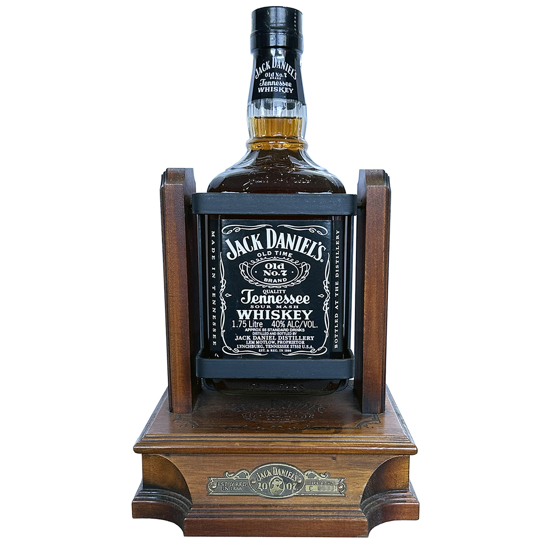 A Limited Edition Jack Daniel’s Old Time 1.75L bottle Old No.7 with wooden cradle made by Pub Art Australia. This unique cradle is handmade and was only available in Australia. Each cradle was crafted using genuine Jack Daniel’s American oak barrels and the uprights holding the bottle are the original barrel staves. The plaque on the front of each cradle is individually numbered.