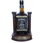 A very Limited Edition Jack Daniel’s Old Time 1.75L bottle Old No.7 with wooden cradle made by Pub Art Australia. This unique cradle is handmade and was only available in Australia. Each cradle was crafted using genuine Jack Daniel’s American oak barrels and the uprights holding the bottle are the original barrel staves. The plaque on the front of each cradle is individually numbered. This was a 2010 special release with Jack Daniel’s photo on the cradle.