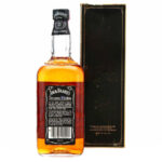 An older bottling Jack Daniel’s Old No.7 Old Time Tennessee Sour Mash Whiskey estimated from 1988. The black box features gold edges, a medallion with Jack Daniel’s photo and the series of 5 Gold Medals that Jack Daniel’s won.