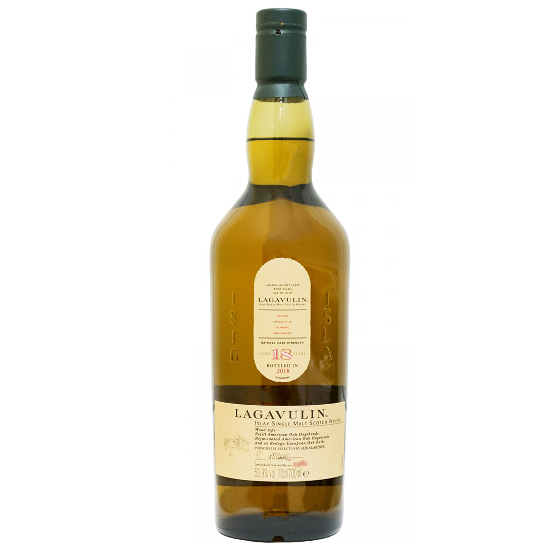 Lagavulin 18 Year Old released for the Islay Festival, Fèis Ìle 2018. This bottling from Lagavulin was triple matured in refill and rejuvenated American oak hogsheads as well as ex-Bodega European oak butts and bottled at cask strength. The whisky was personally selected by Iain McArthur.