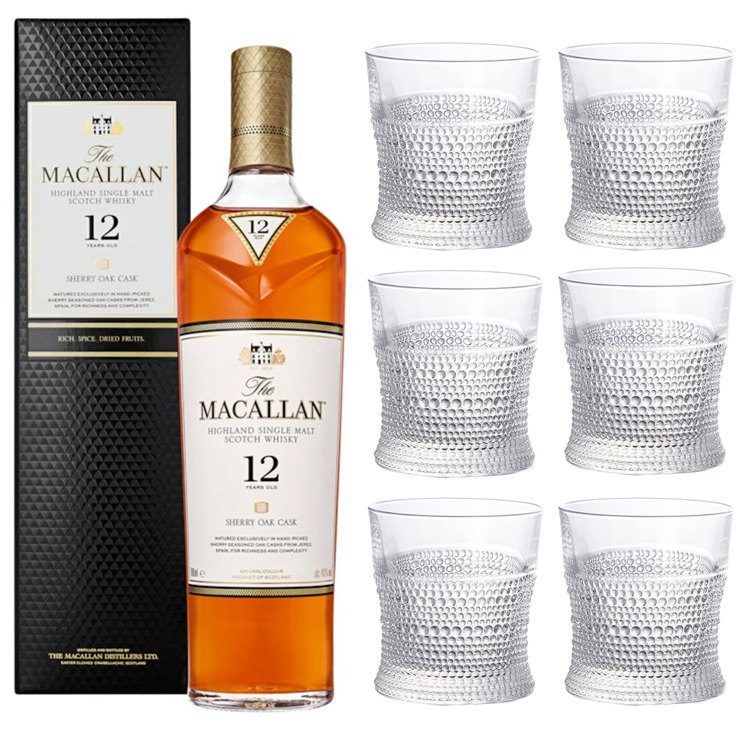 Included in this bundle Macallan 12 Year Old Sherry Oak Single Malt Whisky and set of 6 tumblers.