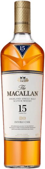 The Macallan Double Cask 15 Years Old is a balanced single malt whisky created by bringing the perfect harmony of two oaks into one exceptional single malt whisky. Sherry seasoned American oak adds delicate vanilla to the subtle spice of European oak, delivering a whisky with a sweeter, warmer taste and character.