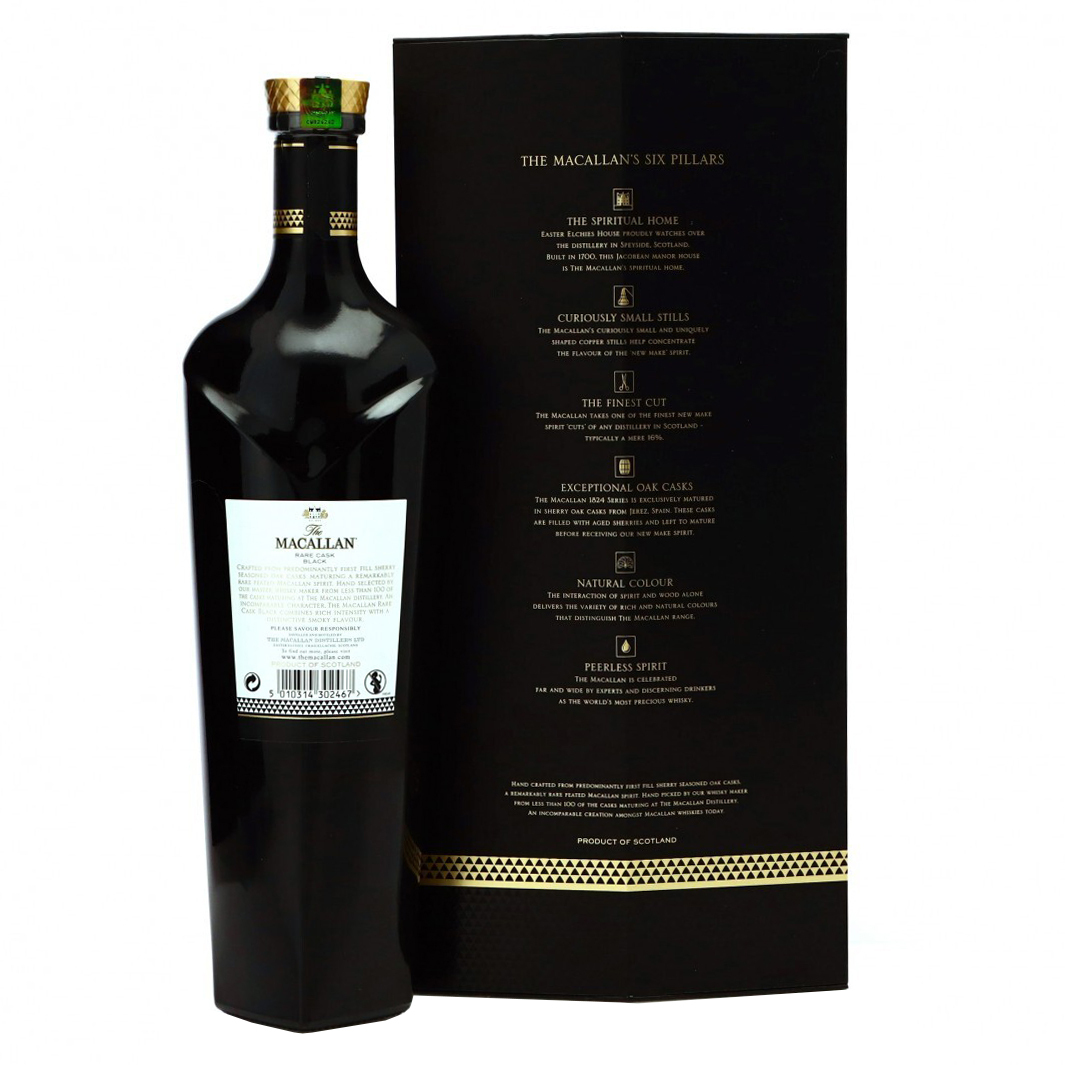 The Rare Cask was introduced in 2014 as a premium permanent addition to the 1824 range, which was marketed between 2012 and 2018. This is a one-off, relatively small release of less than 100 casks, predominantly first fill sherry casks of European and American oak. Distinctive in flavour with full bodied richness from The Macallan spirit, Rare Cask Black is an unusual smoky single malt that tells a story of creativity and innovation.