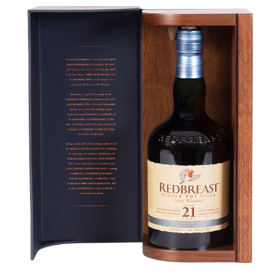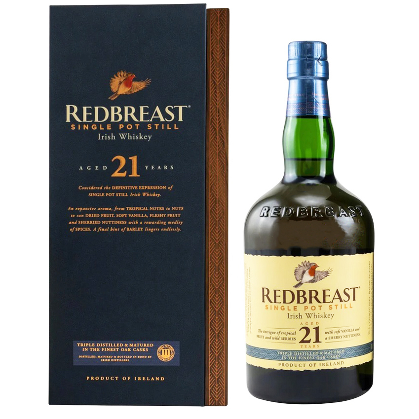 Produced in very limited quantities, Redbreast 21 represents the ultimate expression of Redbreast Single Pot Still Irish Whiskey. It has been triple distilled and matured in the finest oak casks.