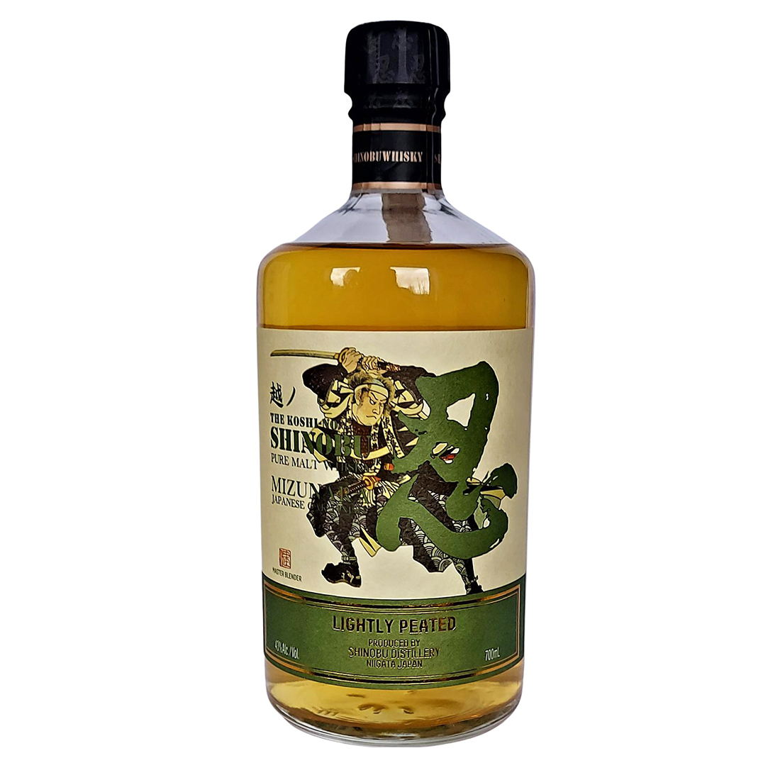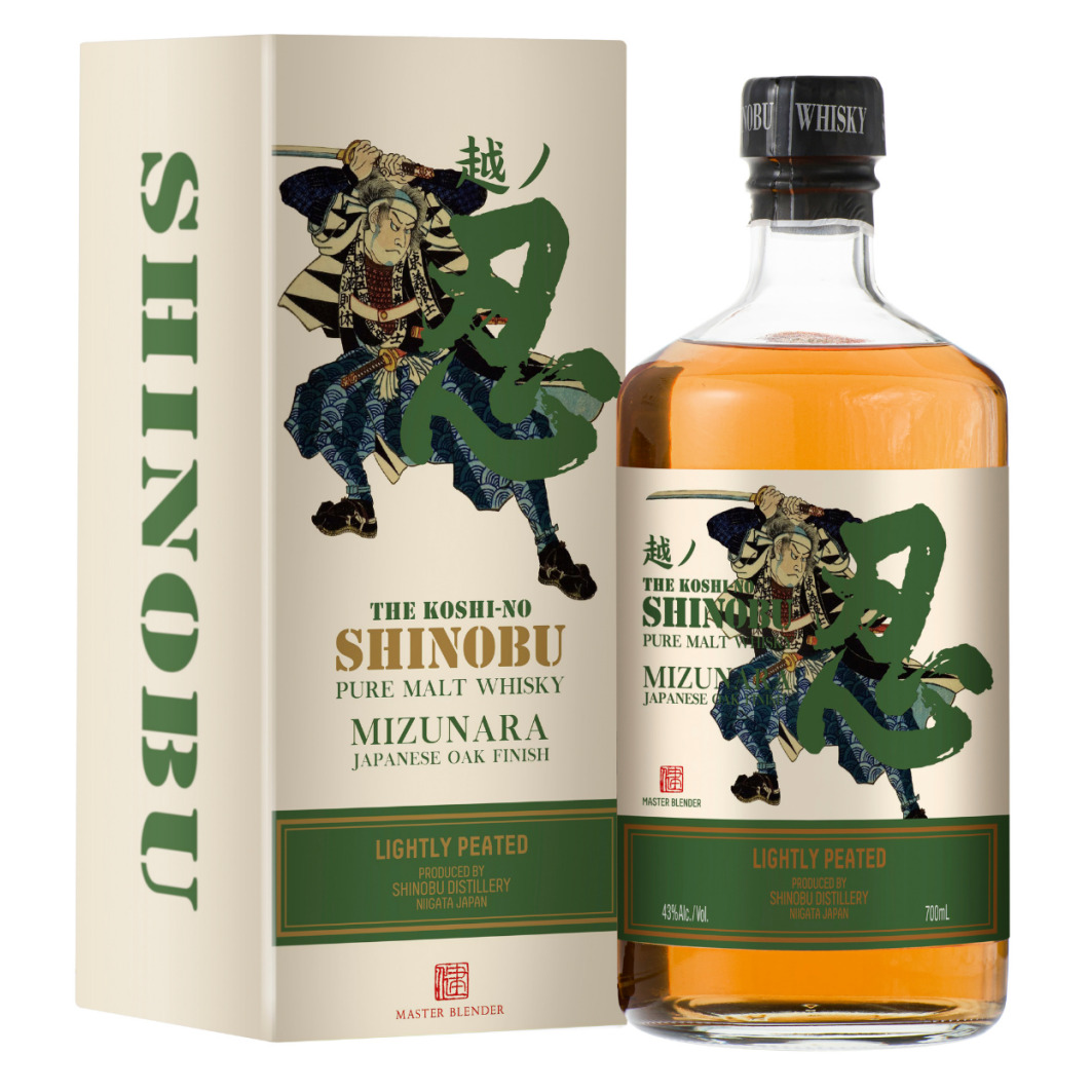 Shinobu Lightly Peated Pure Malt Whisky was crafted by master blender, Mr. Usami Ken who blended malts aged in sherry and bourbon hogshead casks before finishing them in precious Japanese Mizunara Oak.