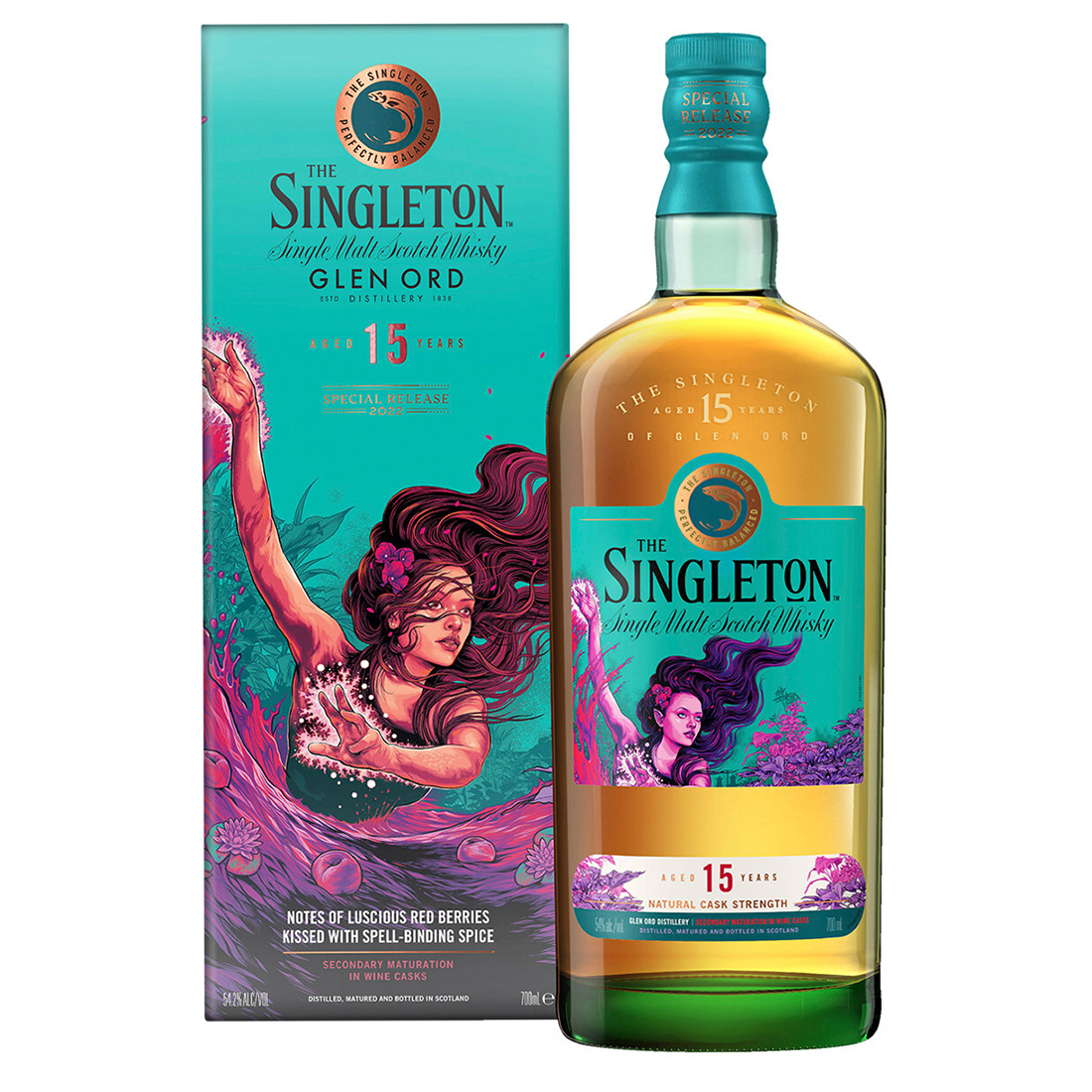 Part of the Special Releases from Diageo, this is the 2022 bottling Singleton of Glen Ord 15 Year Old ‘The Enchantress of the Ruby Solstice’. As the legend goes, a bewitching enchantress once lived deep within the emerald caverns of the River Ord. Powerful and beguiling, she could make the water dance at her command. As each solstice approached, she would fix her diamond bright gaze on the river and weave its currents into rich and indulgent ruby-red wine. As they flowed through The Singleton’s water source, these charmed currents imparted The Singleton with a luscious and alluring character, as spellbinding as the ritual of the ruby solstice. Chasing the river’s edge beside The Singleton of Glen Ord, the story of singular enchantment carries weight.