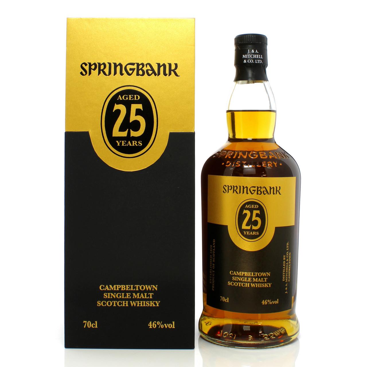 Springbank 25 Year Old is housed in a 700ml bottle at 46.0% ABV