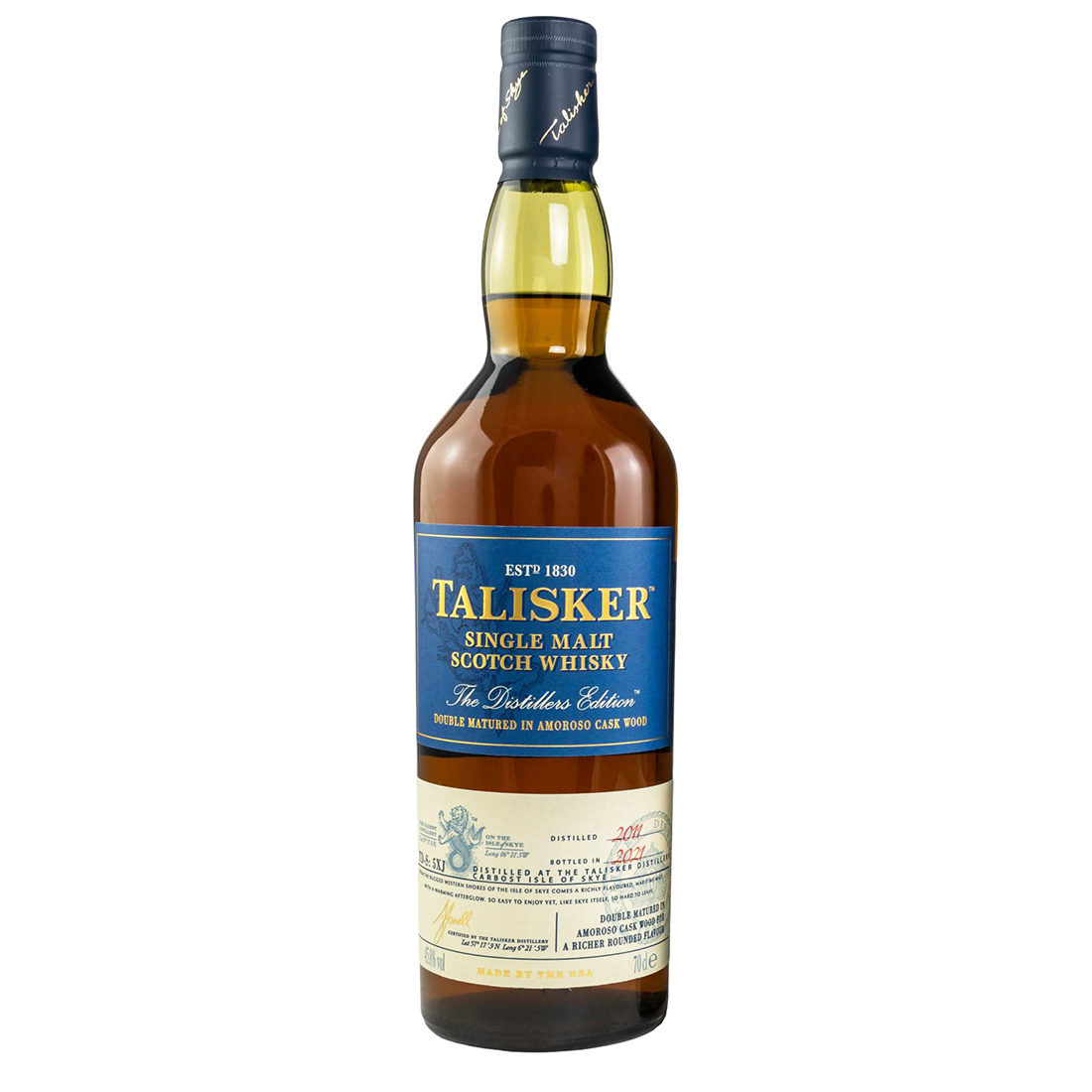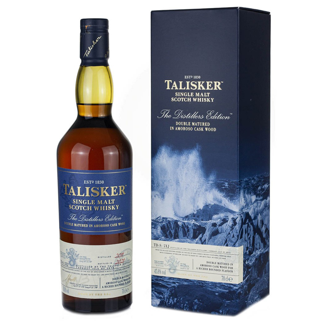 Talisker Distillers Edition Single Malt was distilled in 2011 and bottled in 2021. It was double matured in Amoroso sherry casks for a richer rounded flavour.