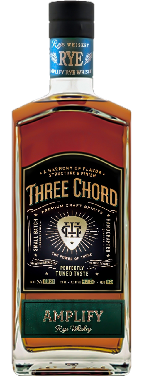 Drier and spicier than most whiskey, Three Chord Amplify Rye offers an array of flavors and aromas not present in bourbon. Three Chord Amplify Rye features the grain-forward (almost grassy) character of young Kentucky rye and more refined, deeper flavors of older Indiana rye. The two whiskies are blended in a large tank before re-barreling for 2-6 months. At 95 proof, Amplify Rye expresses a remarkable depth of rye character that offers complexity, elegance, and balance.