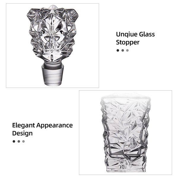 The whisky decanter set is perfect for whisky, bourbon, scotch, vodka, bourbon and other spirits. Crafted with exquisite craftsmanship, combines timeless design with modern style.