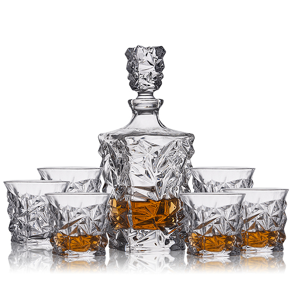 Whisky Decanter with 6 Tumblers Glass Rocco Set