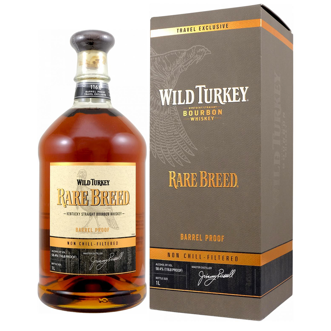 Wild Turkey Rare Breed Kentucky Straight Bourbon Whiskey is barrel proof (bottled at cask strength) non-chill filtered version, a Travel Exclusive release.